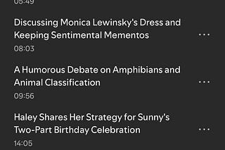 Hey! Shout out to the AI-generated section titles of Dear Danny on Spotify, sent by my friend this week.